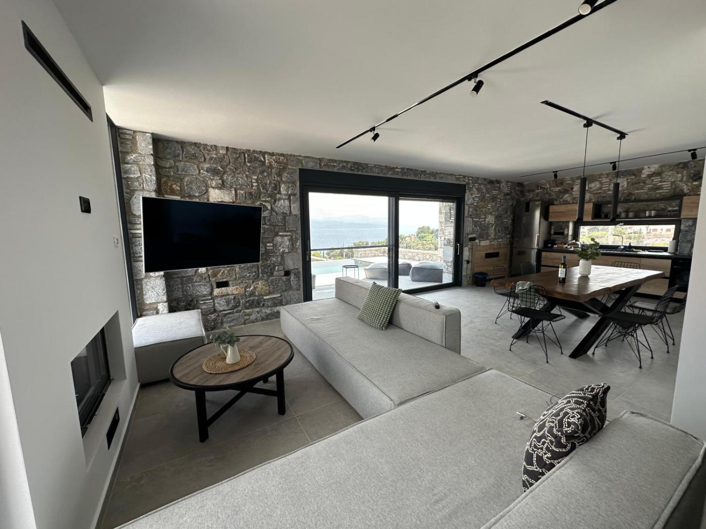 Three-Bedroom Villa. This luxurious villa offers a pool with a view, a hot tub and a fireplace. Boasting a private entrance, this air-conditioned villa features a kitchen, 3 bedrooms and 2 bathrooms with a walk-in shower and a bath. Guests will find a stovetop, a refrigerator, an oven and a tea and coffee maker in the well-fitted kitchen. The villa also comes with a barbecue. Featuring a terrace with sea views, this villa also features soundproof walls and a flat-screen TV with streaming services. The unit has 3 beds.