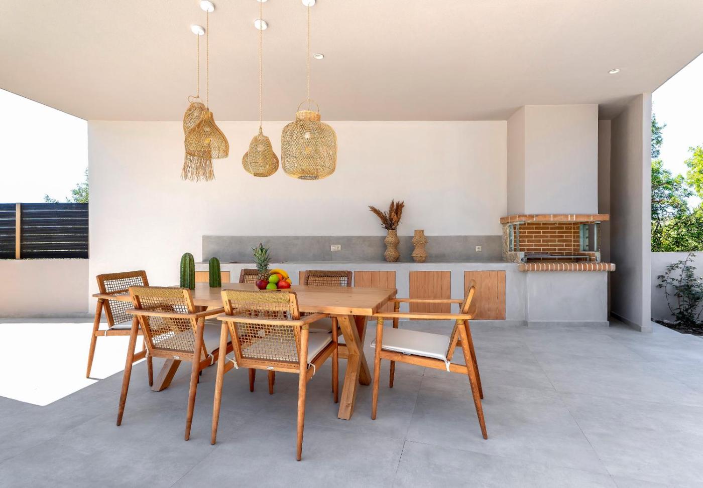 Three-Bedroom Villa. This villas special features are the infinity pool and the fireplace. Featuring a private entrance, this air-conditioned villa consists of 1 living room, 3 separate bedrooms and 3 bathrooms with a shower and a hairdryer. Guests will find a stovetop, a refrigerator, a dishwasher and kitchenware in the well-fitted kitchen. The villa also offers a barbecue. Boasting a terrace with garden views, this villa also provides a washing machine and a flat-screen TV with streaming services. The unit offers 4 beds.