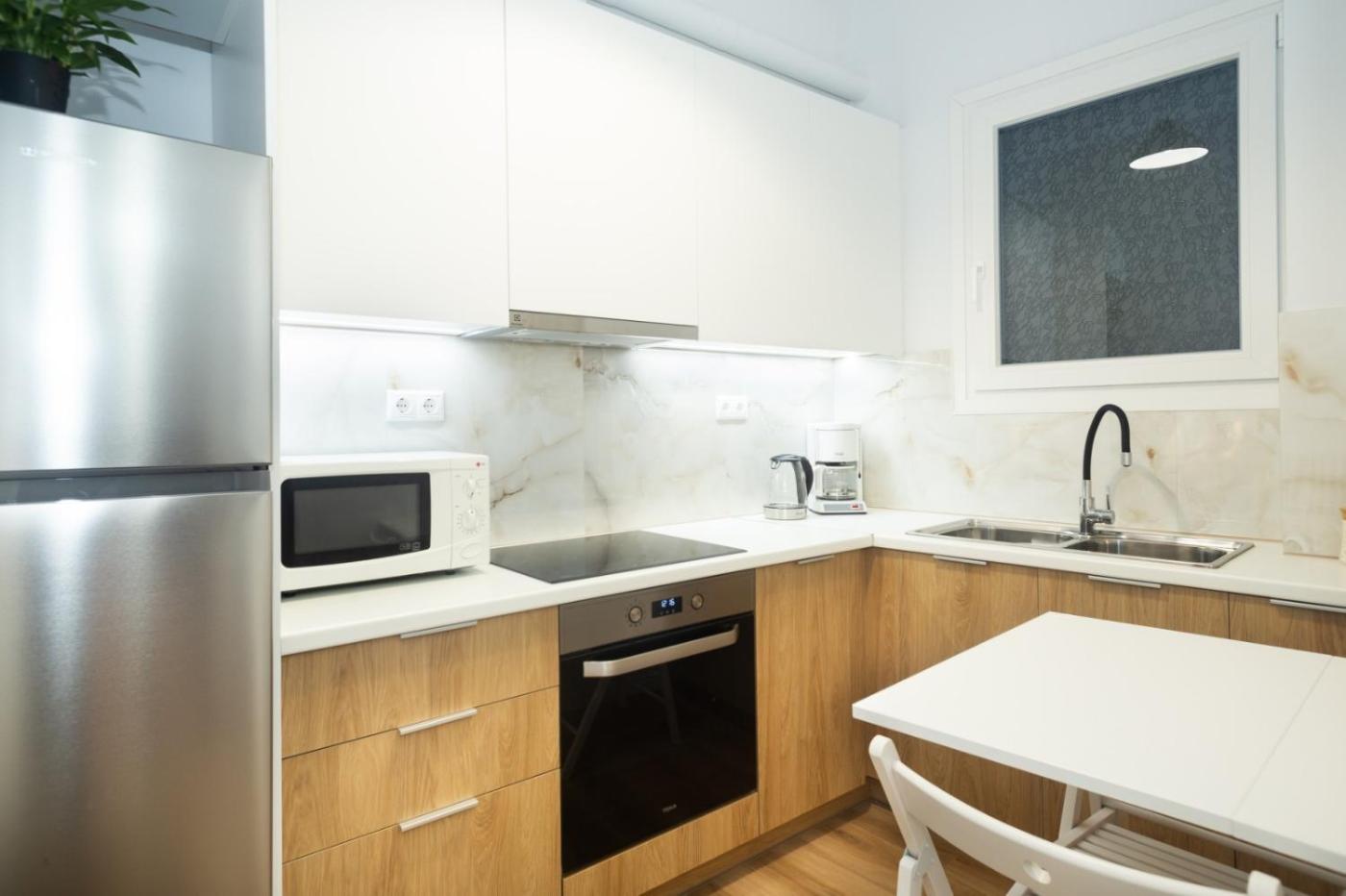 One-Bedroom Apartment. Featuring a private entrance, this air-conditioned apartment is comprised of 1 living room, 1 separate bedroom and 1 bathroom with a walk-in shower and a hairdryer. The well-fitted kitchen has a stovetop, a refrigerator, kitchenware and an oven. This apartment features a washing machine, flat-screen TV, garden views, as well as winechampagne for guests. The unit offers 2 beds.