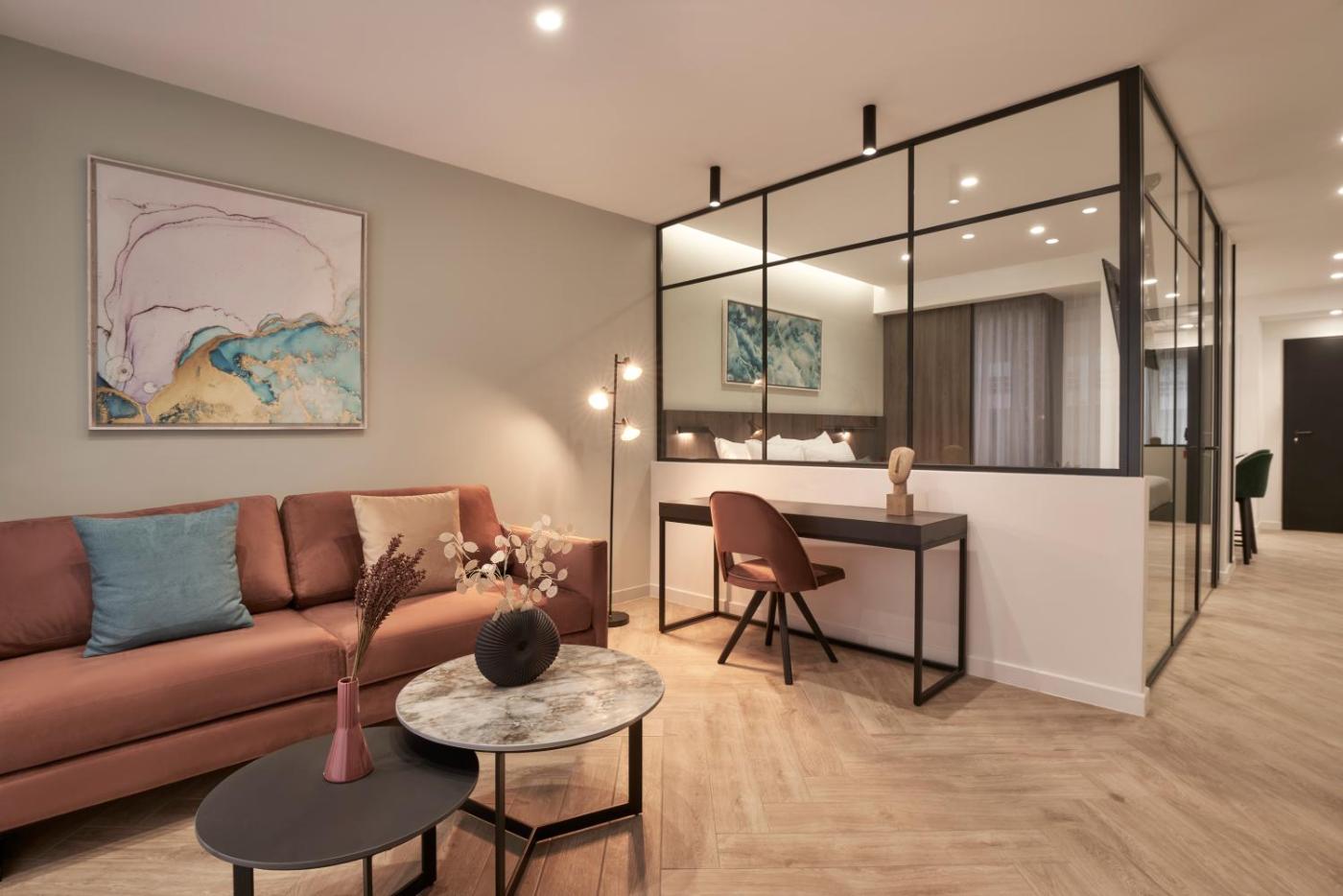 Standard Apartment. This apartment features 1 living room, 1 separate bedroom and 1 bathroom with a shower and free toiletries. In the well-fitted kitchen, guests will find a stovetop, a refrigerator, a dishwasher and kitchenware. This apartment is air-conditioned and has a seating area with a flat-screen TV, soundproof walls, a coffee machine, a wardrobe, as well as a safe deposit box. The unit has 1 bed. ;