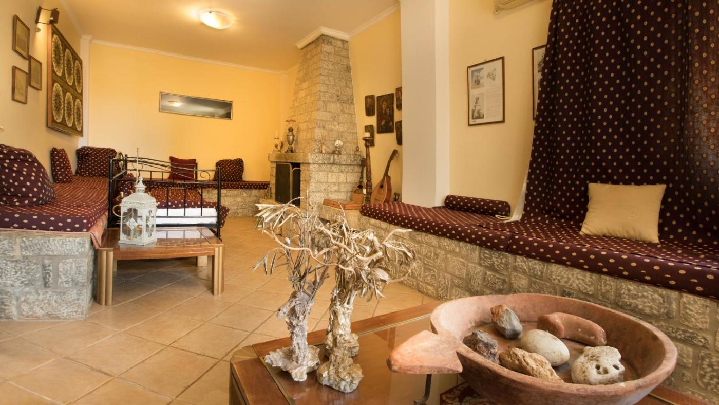 Superior Apartment. Featuring antique furnishings and a fireplace, this air-conditioned apartment opens to a furnished patio with Laconic Gulf view. Featuring wrought-iron beds, it includes a kitchenette with a stove, fridge and dining area. A CD and DVD player are provided. Please note that rooms of this apartment are not separated with doors. ;