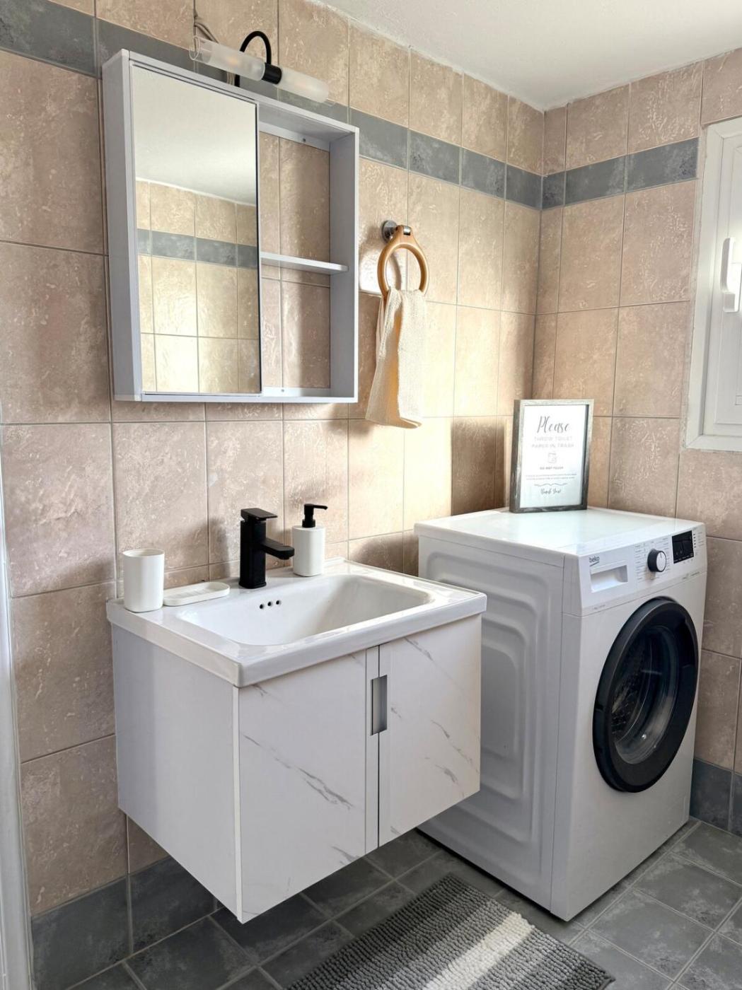Three-Bedroom House. This air-conditioned holiday home is comprised of 1 living room, 3 separate bedrooms and 1 bathroom with a shower. In the kitchen, guests will find a stovetop, a refrigerator, kitchenware and an oven. Featuring a terrace with sea views, this holiday home also offers a washing machine and a flat-screen TV. The unit offers 4 beds.
