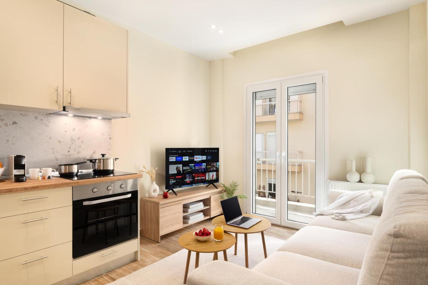 One-Bedroom Apartment. Featuring a private entrance, this air-conditioned apartment comprises 1 living room, 1 separate bedroom and 1 bathroom with a shower and a hairdryer. In the fully equipped kitchen, guests will find a stovetop, a refrigerator, kitchenware and an oven. The apartment features tiled floors, a seating area with a flat-screen TV, a washing machine, soundproof walls as well as ancourtyard view. The unit offers 2 beds.